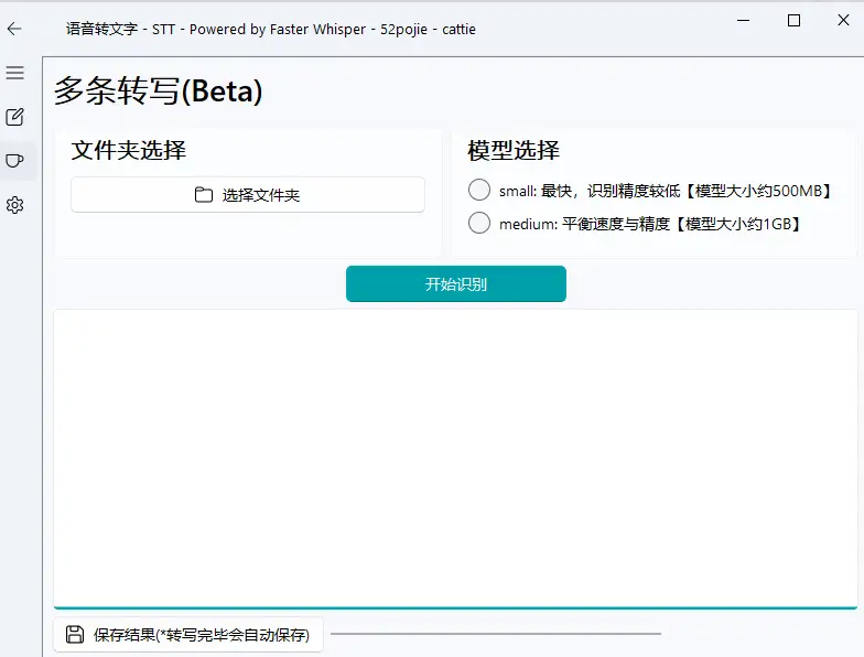 这款工具就是利用这个模型打造的外壳,支持一键将录音转换为文字。