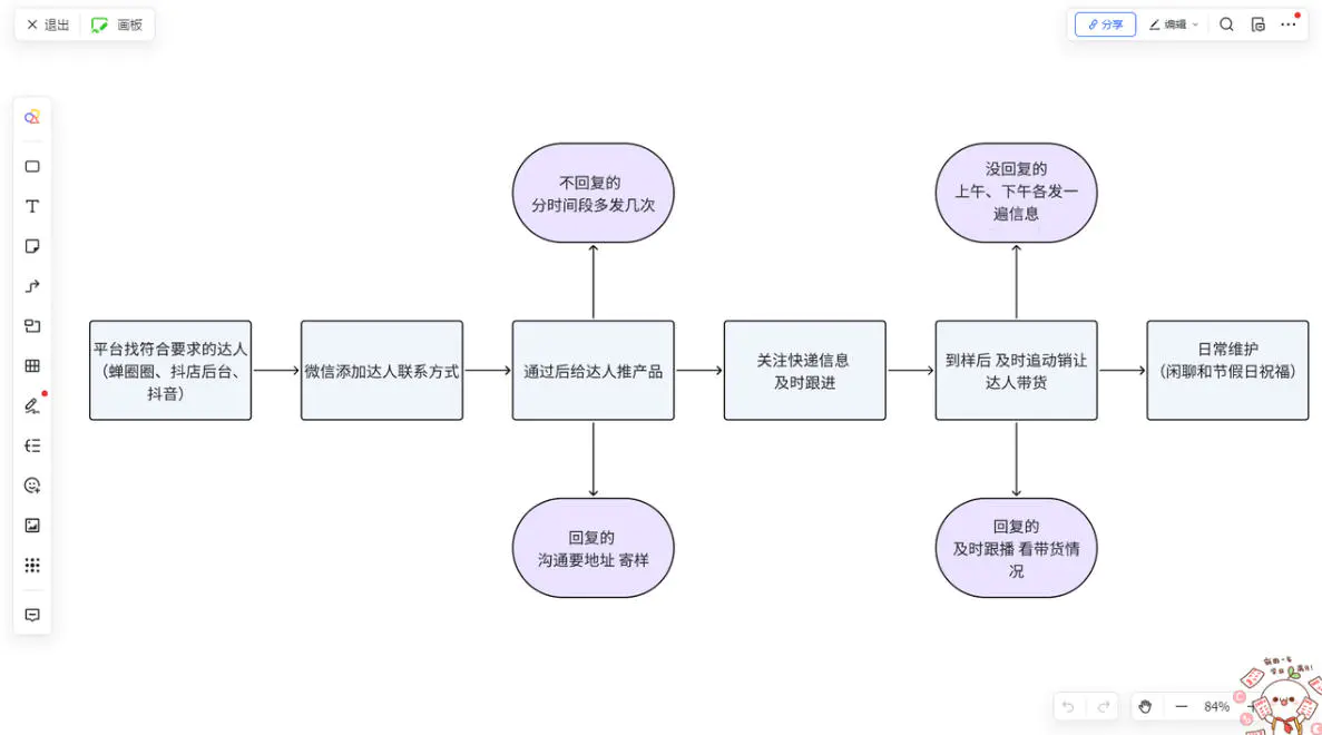我们公司属于是厂家,我们整体的业务就是达人分销 (通过抖音精选联盟、蝉圈圈去找到符合的达人,然后加微信→推产品→寄样→追动销→达人带货)